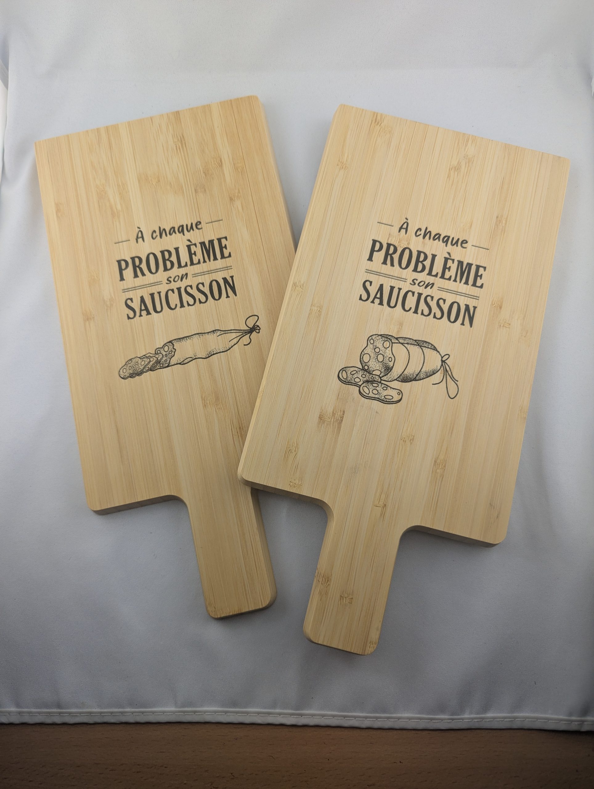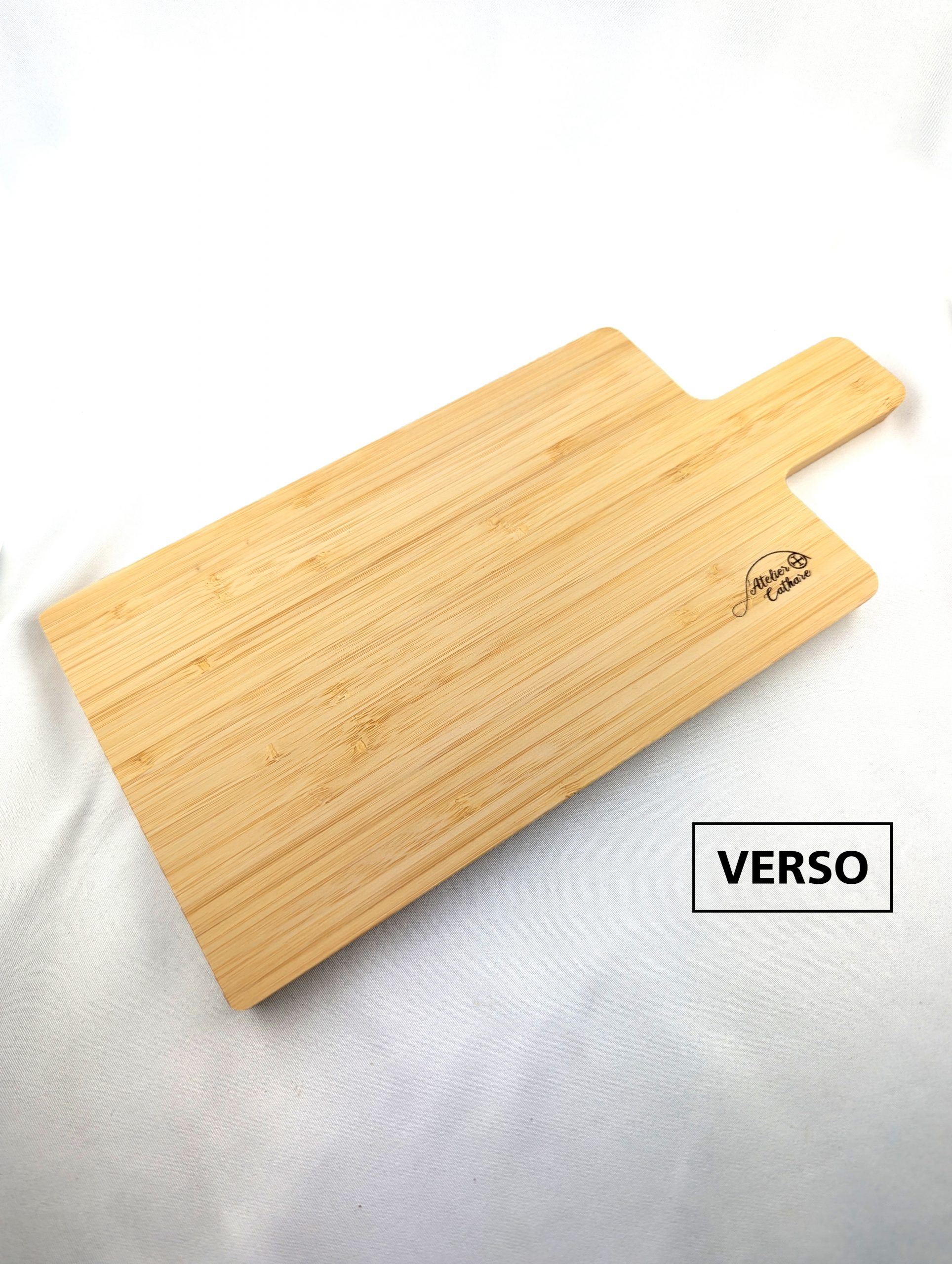 Possibilité de personnaliser la planche à découper avec la gravure que vous souhaitez. Dans ce cas, envoyez-moi un mail en indiquant ce que vous souhaitez.